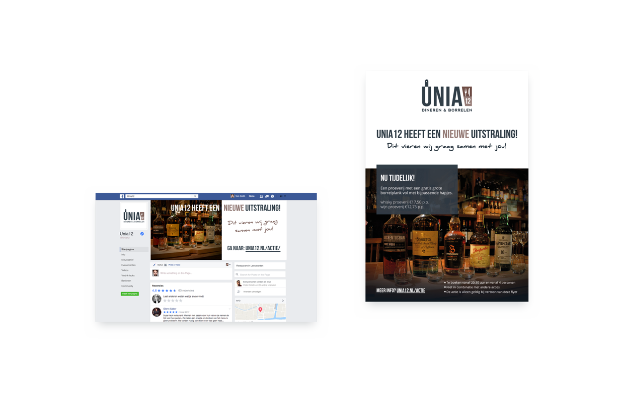 Unia 12 is een van de kleinste restaurants van Leeuwarden. In de jaren dat het bestaat heeft Unia 12 bewezen dat het goed restaurant is waar je heerlijk kunt genieten van eten en drinken. Ze zijn gegroeid in interieur en tafelbezetting. De oude uitingen waren niet meegegroeid en daarom waren ze toe aan een totale make-over. Een uitstraling die beter past bij het gezellige en sfeervolle restaurant.