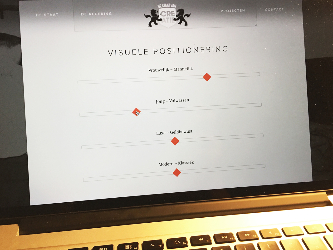 Een bedrijf kan nu makkelijk in kaart brengen wat hun visuele positionering is voor een nieuw project bij de Staat. Dit doormiddel van schuifjes zo kan dit op un hele makkelijke manier in kaart worden gebracht.