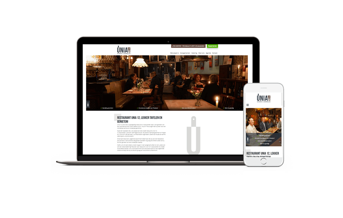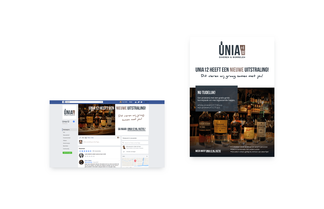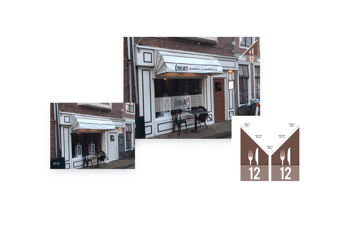 Unia 12 is een van de kleinste restaurants van Leeuwarden. In de jaren dat het bestaat heeft Unia 12 bewezen dat het een goed restaurant is waar je heerlijk kunt genieten van eten en drinken. Ze zijn gegroeid in interieur en tafelbezetting. De oude uitingen waren niet meegegroeid en daarom waren ze toe aan een totale make-over. Een uitstraling die beter past bij het gezellige en sfeervolle restaurant.